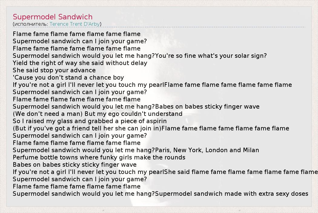 А как ты думаешь, о чем песня "Supermodel Sandwich" ?