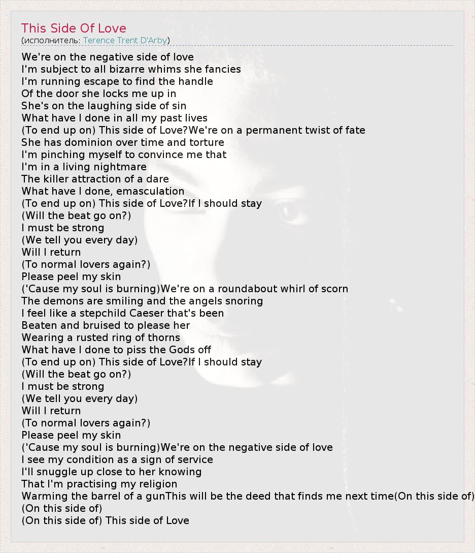 А как ты думаешь, о чем песня "This Side Of Love" ?