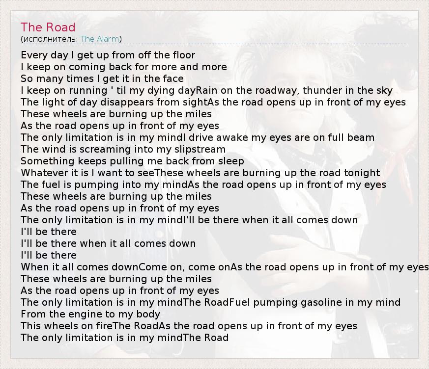This wheels on fireThe RoadAs the road opens up in front of my eyes