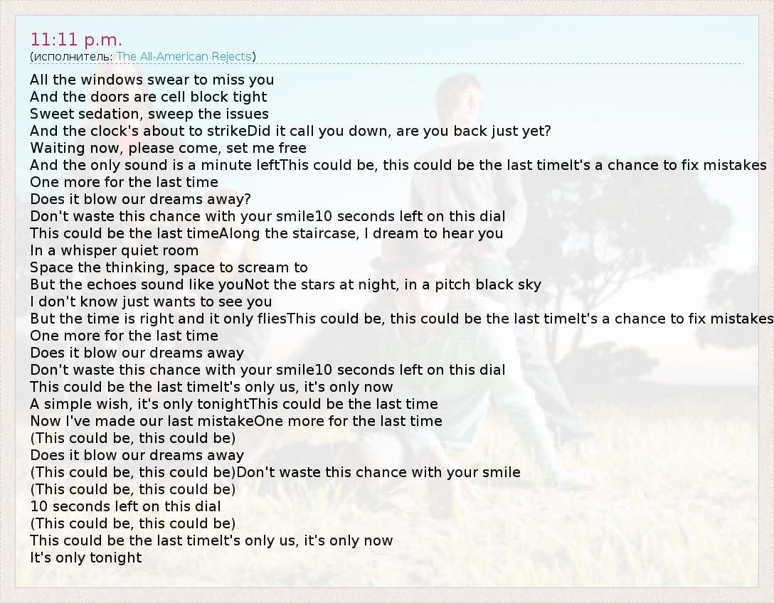 А как ты думаешь, о чем песня "11:11 p.m." ?