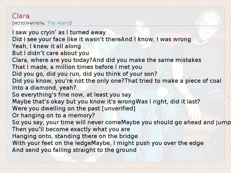 Это интересно:Группа "Ataris" из городка Андерсон, штат Индиана, образовалась в 1994 году. Ее первоначальный состав включал в себя всего двух человек, Криса Ро и Джэйсина Томасона, а функции ударника выполняла драм-машина. Пока шли поиски живого барабанщика, парни не тратили время зря, а, запершись в спальне Криса, записывали на четырехдорожечник свои демки. Как-то раз Ро довелось побывать на концерте... продолжение