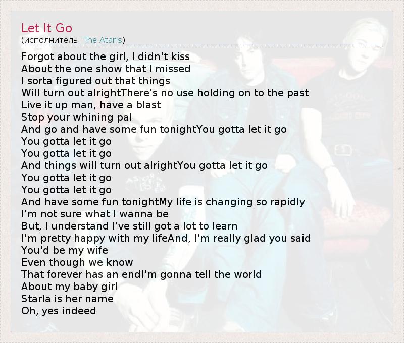 And things will turn out alrightYou gotta let it go