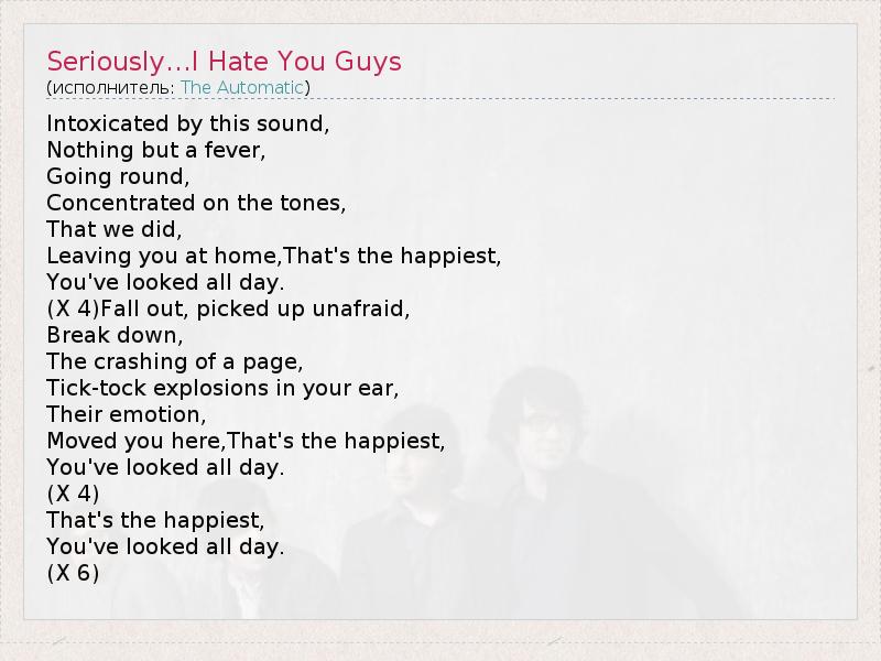 А как ты думаешь, о чем песня "Seriously...I Hate You Guys" ?