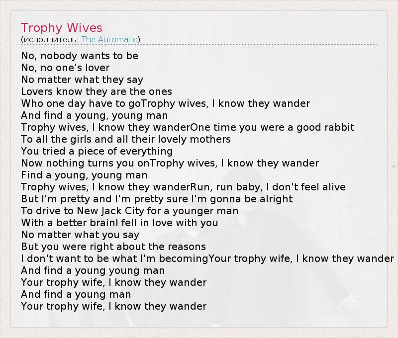 А как ты думаешь, о чем песня "Trophy Wives" ?