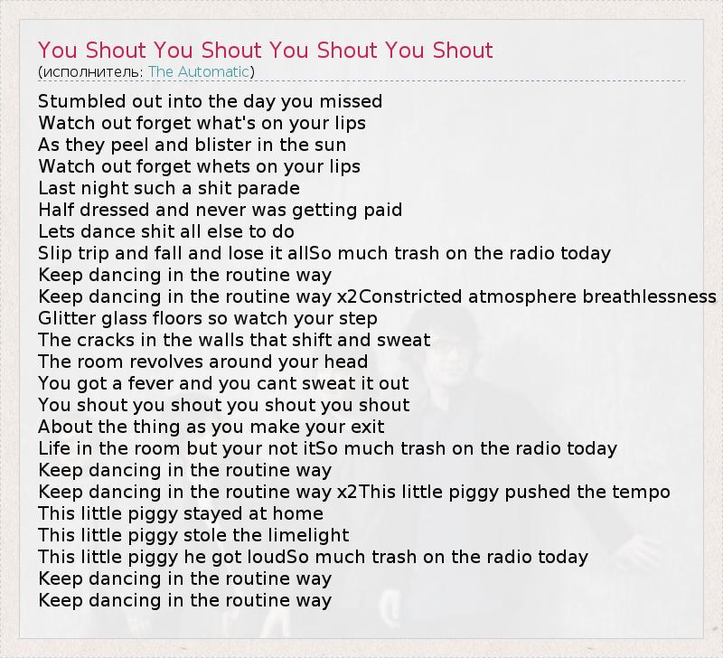 А как ты думаешь, о чем песня "You Shout You Shout You Shout You Shout" ?