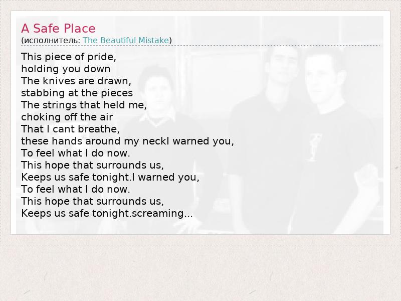 А как ты думаешь, о чем песня "A Safe Place" ?