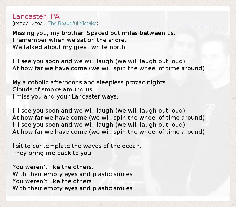 А как ты думаешь, о чем песня "Lancaster, PA" ?