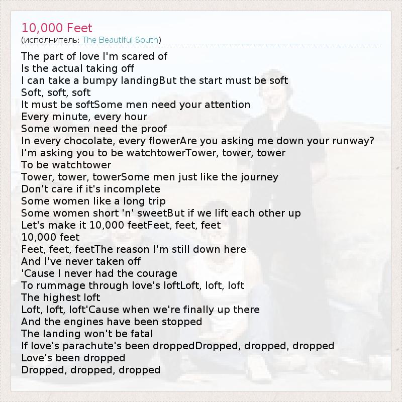 А как ты думаешь, о чем песня "10,000 Feet" ?