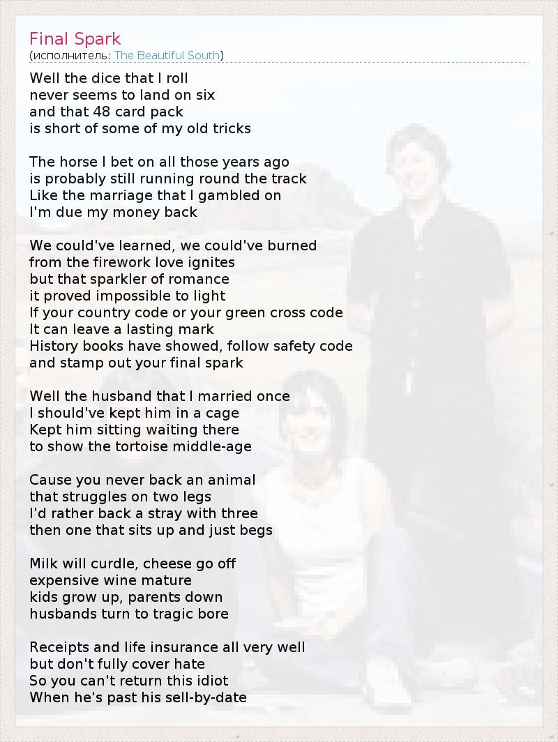 and stamp out your final spark