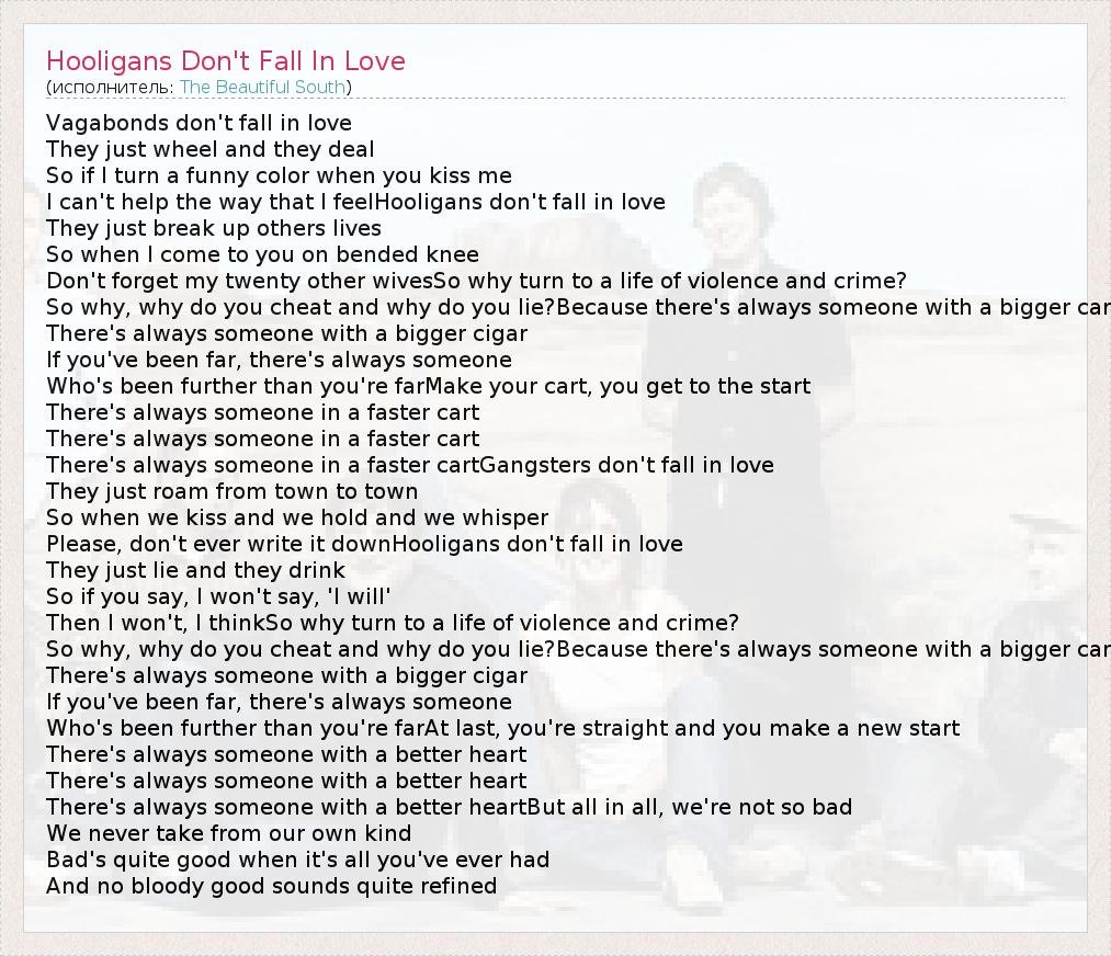 А как ты думаешь, о чем песня "Hooligans Don't Fall In Love" ?