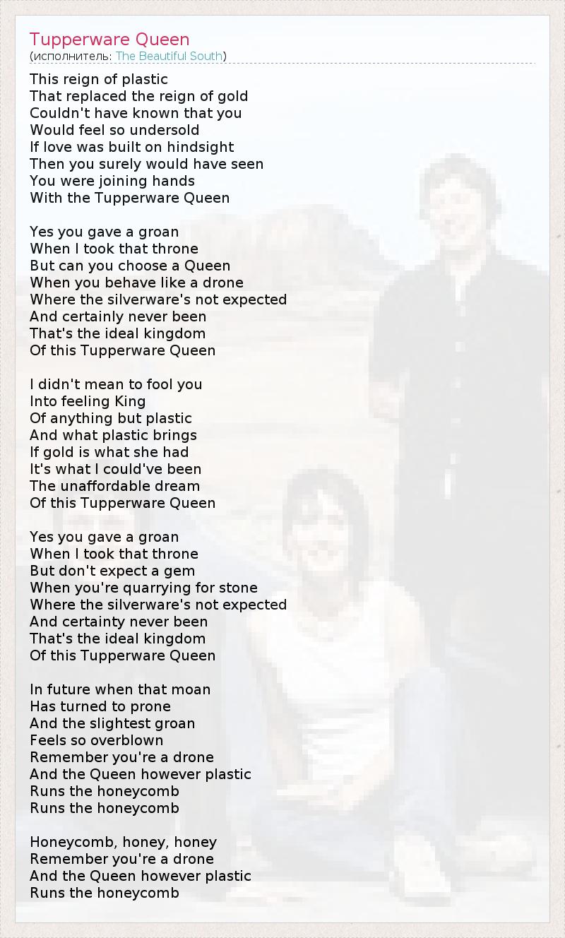 А как ты думаешь, о чем песня "Tupperware Queen" ?