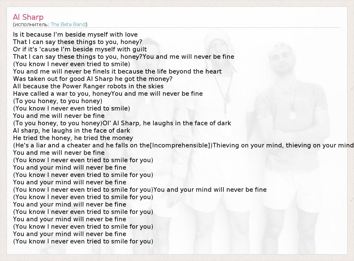 А как ты думаешь, о чем песня "Al Sharp" ?