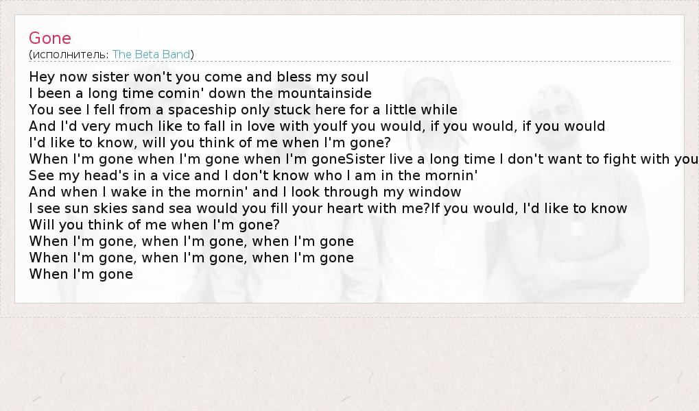 А как ты думаешь, о чем песня "Gone" ?