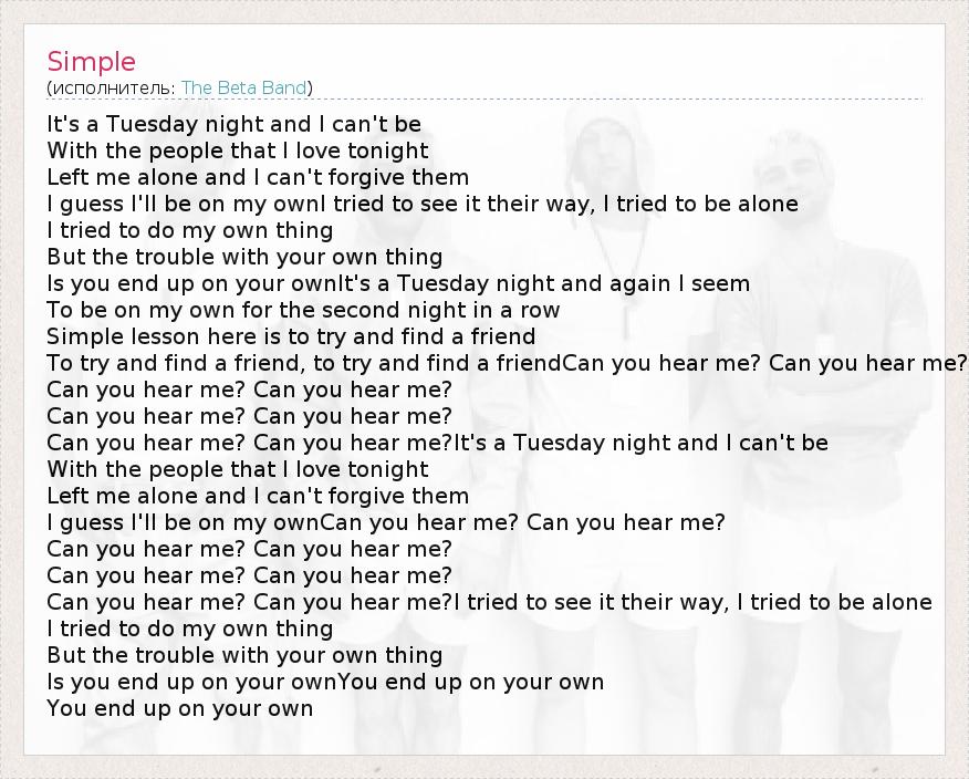 Can you hear me? Can you hear me?It's a Tuesday night and I can't be