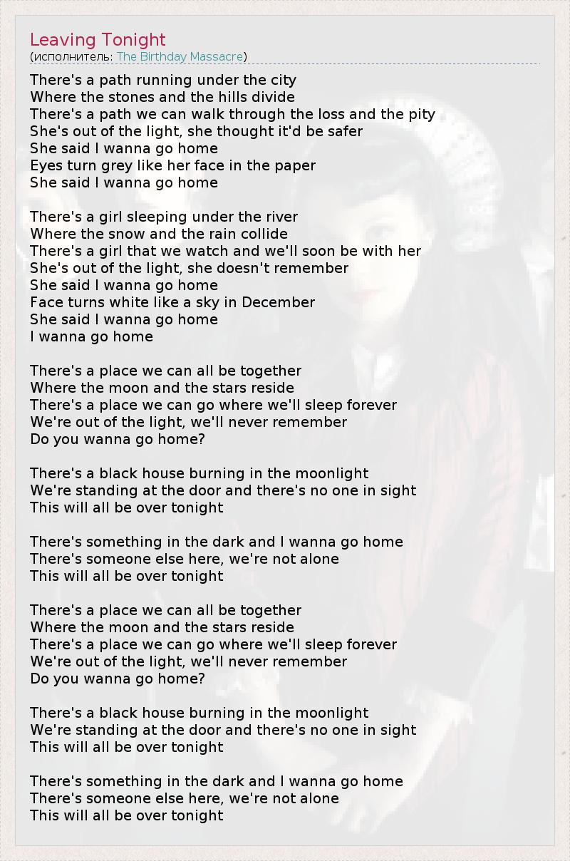А как ты думаешь, о чем песня "Leaving Tonight" ?
