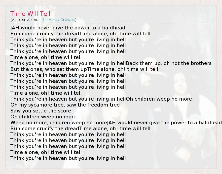 А как ты думаешь, о чем песня "Time Will Tell" ?