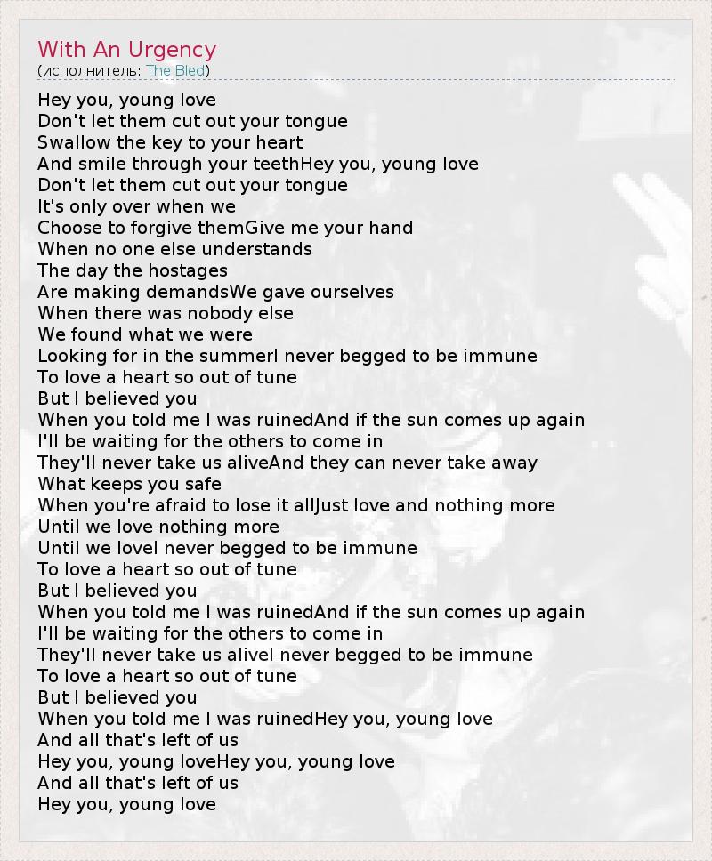 А как ты думаешь, о чем песня "With An Urgency" ?