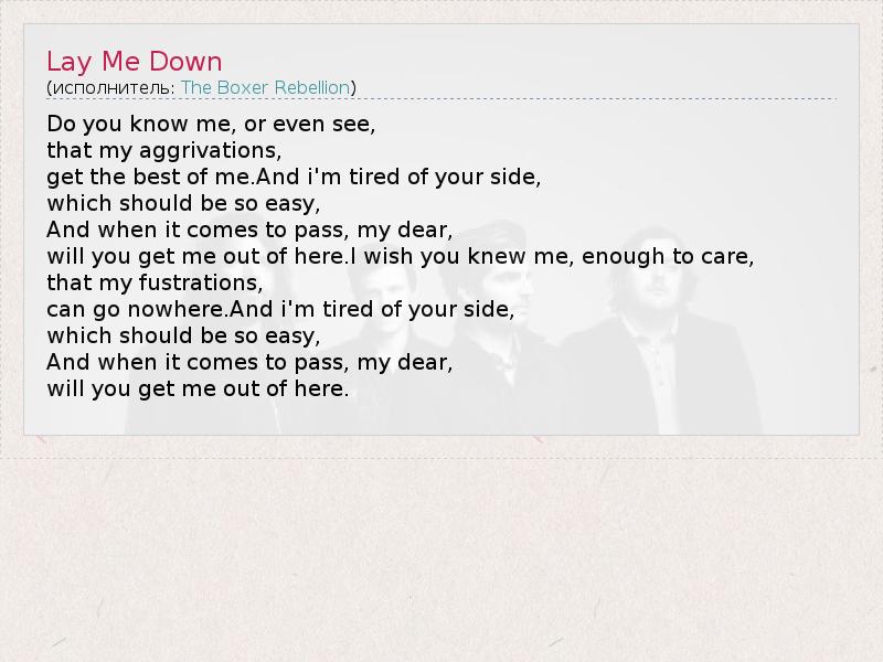 А как ты думаешь, о чем песня "Lay Me Down" ?