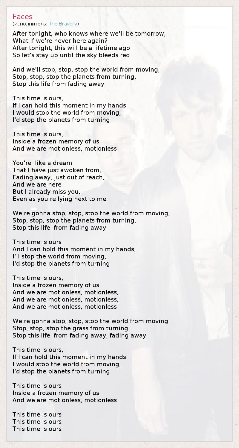And we'll stop, stop, stop the world from moving,