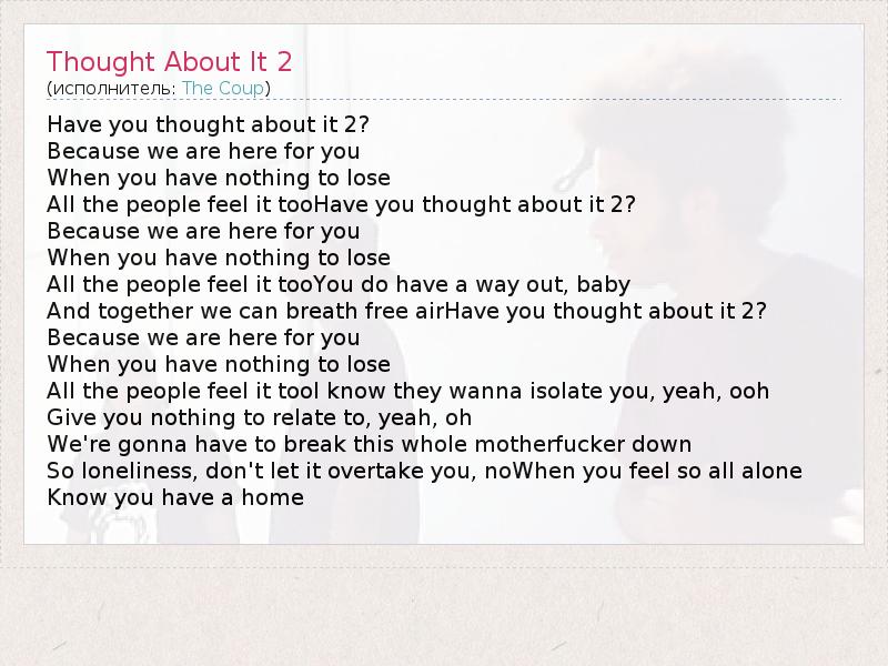 А как ты думаешь, о чем песня "Thought About It 2" ?