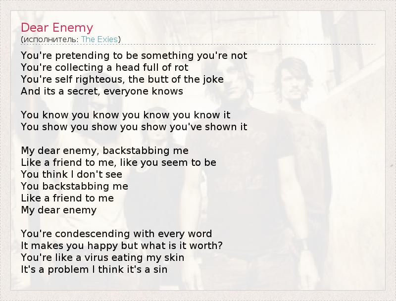 А как ты думаешь, о чем песня "Dear Enemy" ?
