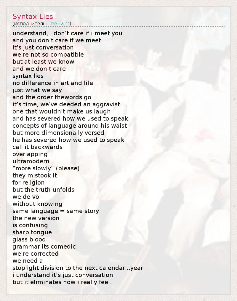 А как ты думаешь, о чем песня "Syntax Lies" ?
