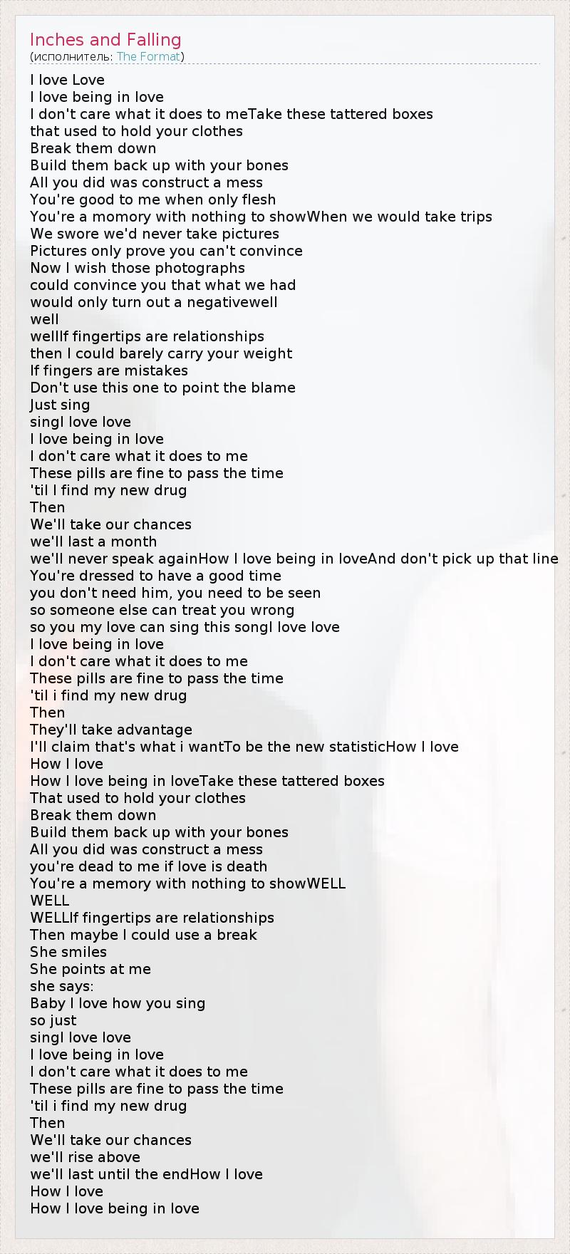 А как ты думаешь, о чем песня "Inches and Falling" ?
