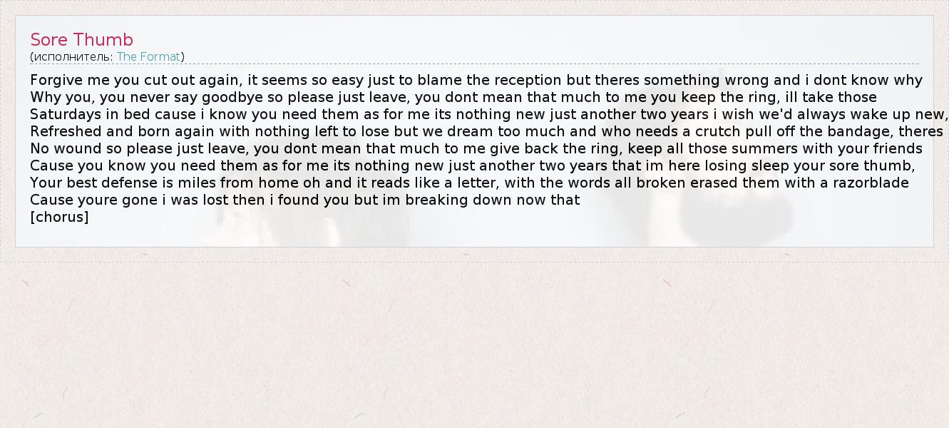 А как ты думаешь, о чем песня "Sore Thumb" ?