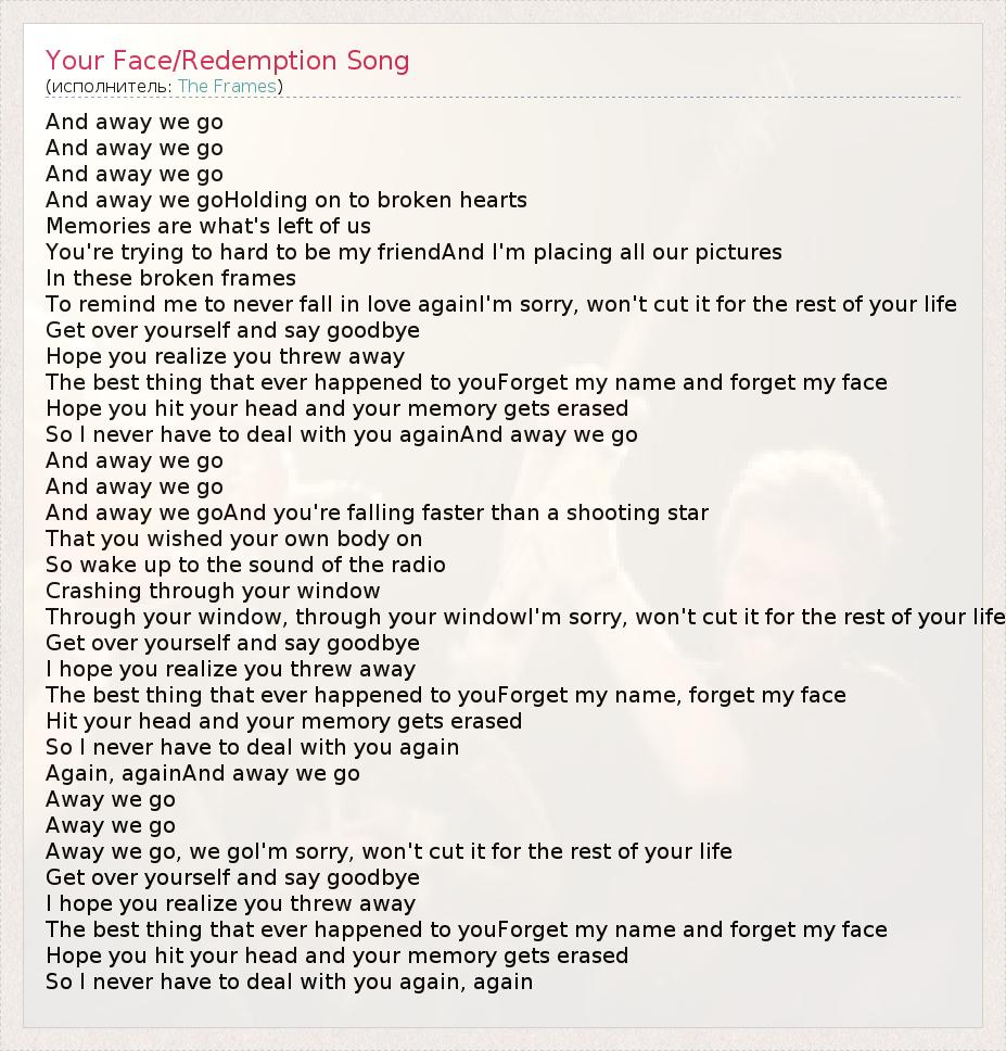 ГлавнаяИсполнителиThe FramesYour Face/Redemption Song