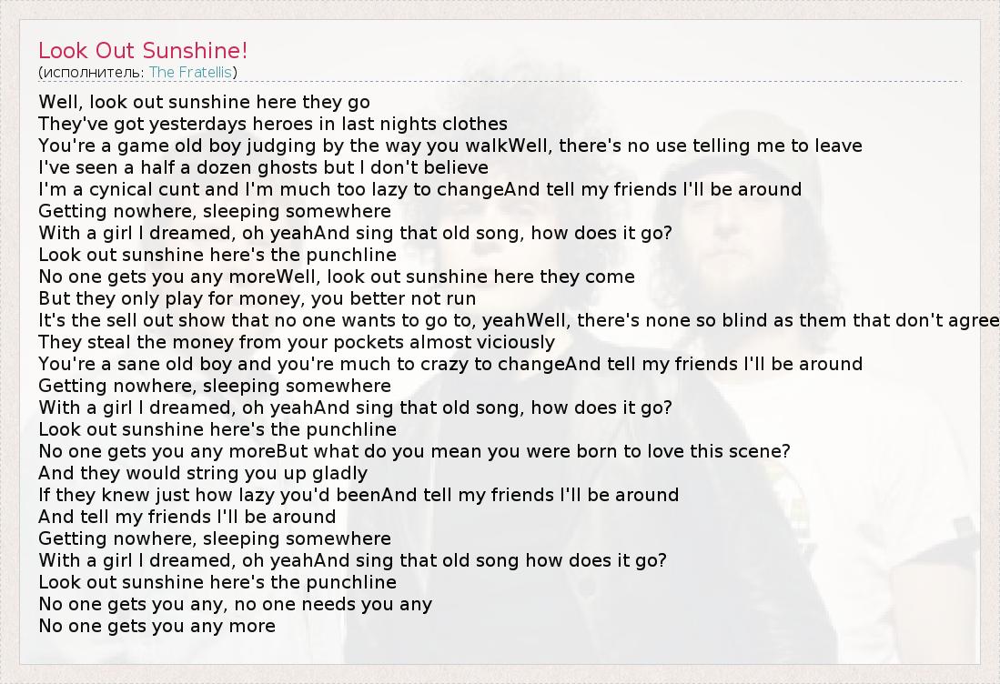 А как ты думаешь, о чем песня "Look Out Sunshine!" ?