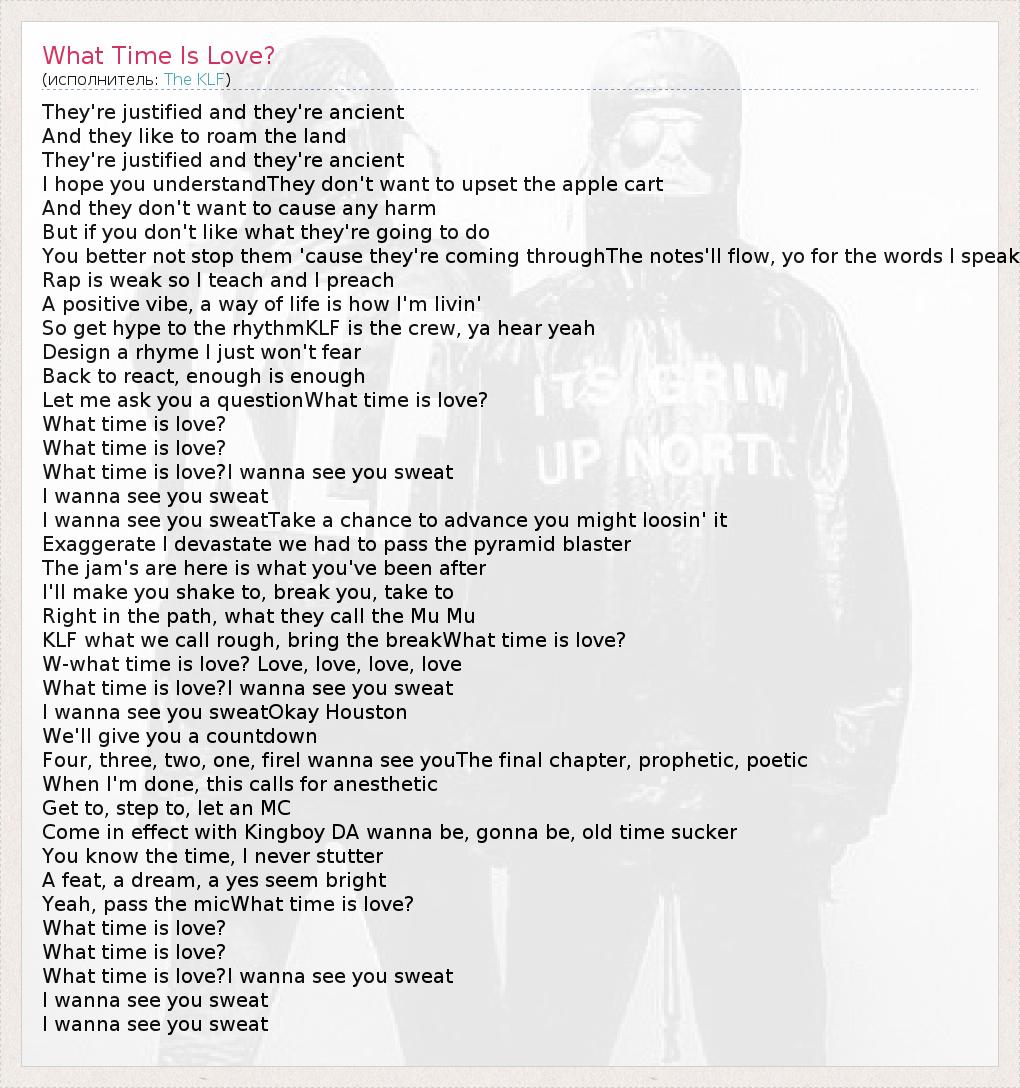 А как ты думаешь, о чем песня "What Time Is Love?" ?