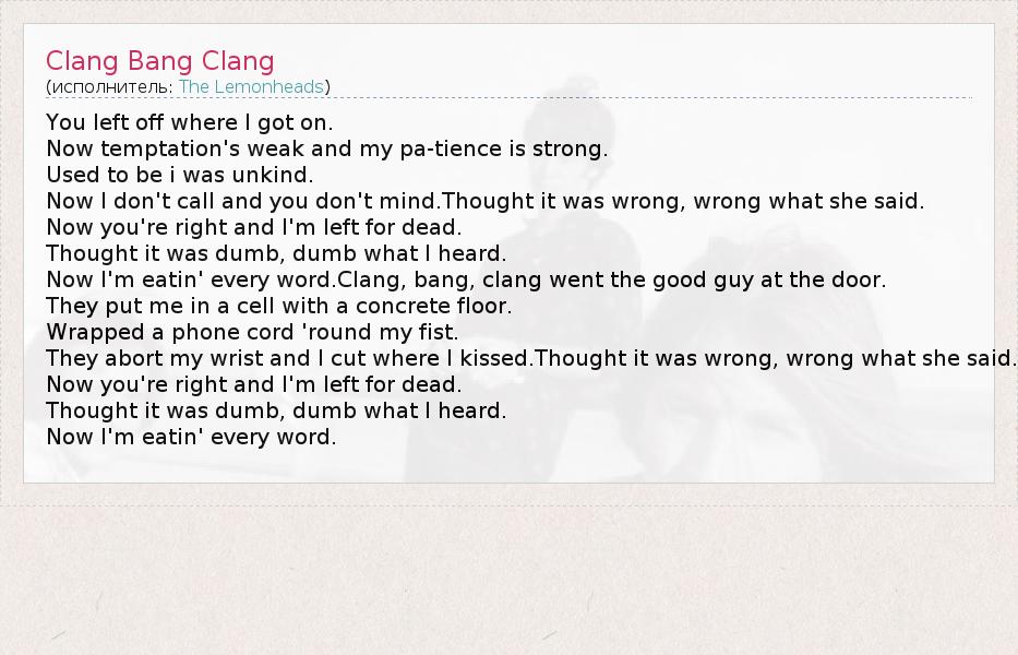 А как ты думаешь, о чем песня "Clang Bang Clang" ?