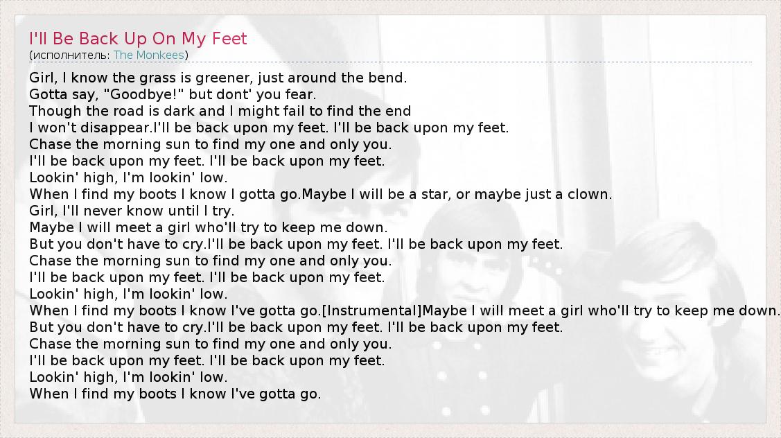 ГлавнаяИсполнителиThe MonkeesI'll Be Back Up On My Feet