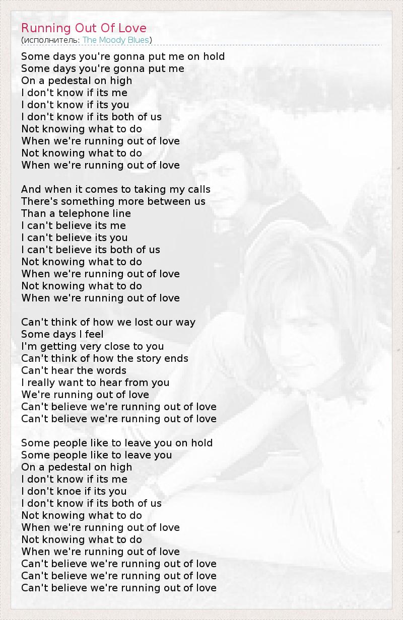 А как ты думаешь, о чем песня "Running Out Of Love" ?