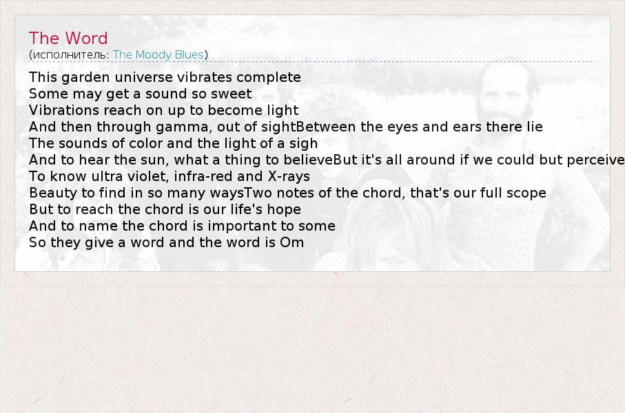 Это интересно:На заре 60-х годов Рэй Томас (р. 29 декабря 1941), Джон Лодж и Майкл Пиндер (р. 12 декабря 1942) играли в бирмингемской группе "El Riot & the Rebels". Когда ансамбль распался, пути музыкантов разошлись, но через некоторое время Пиндер (клавишные) и Томас (флейта) организовали проект "Krew Cats". Потом к ним присоединились Денни Лэйн (Брайен Хайнс, р. 29 октября 1944; гитара), Грэм Эдж (р. 30 марта 1941; ударные)... продолжение