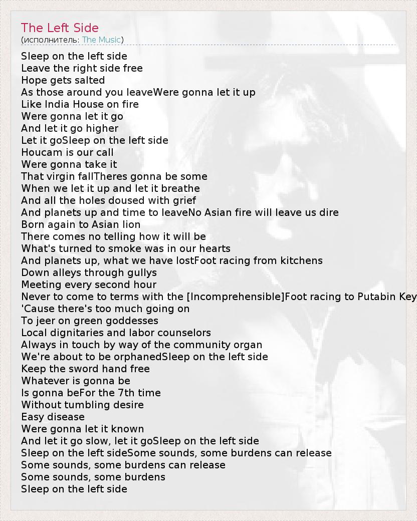 А как ты думаешь, о чем песня "The Left Side" ?