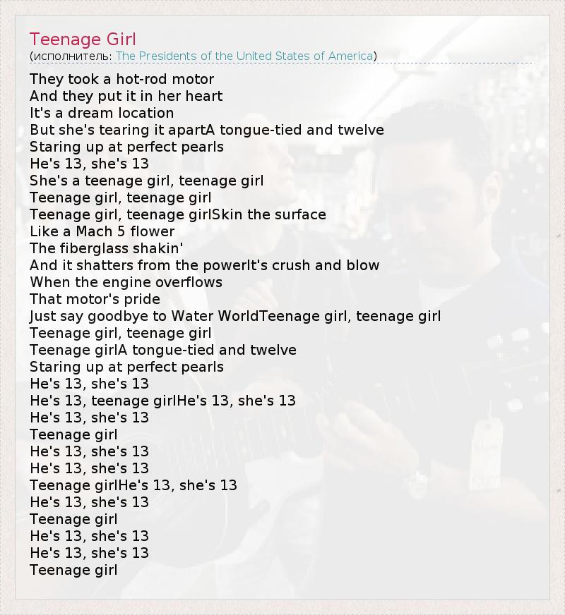 А как ты думаешь, о чем песня "Teenage Girl" ?