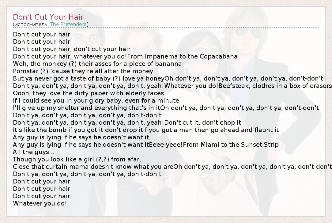 А как ты думаешь, о чем песня "Don't Cut Your Hair" ?