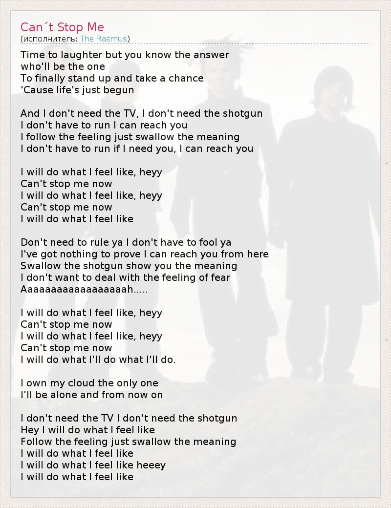 А как ты думаешь, о чем песня "Can´t Stop Me" ?