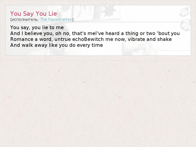 А как ты думаешь, о чем песня "You Say You Lie" ?