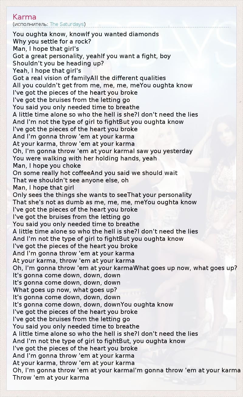 Oh, I'm gonna throw 'em at your karmaI'm gonna throw 'em at your karma