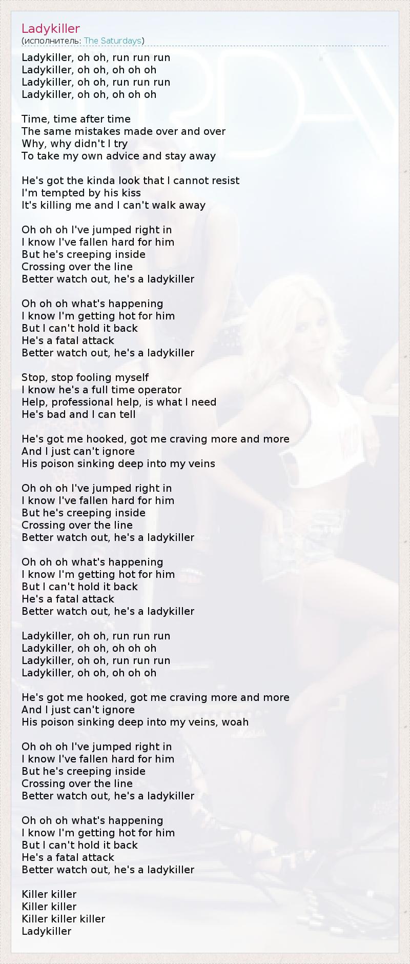 А как ты думаешь, о чем песня "Ladykiller" ?