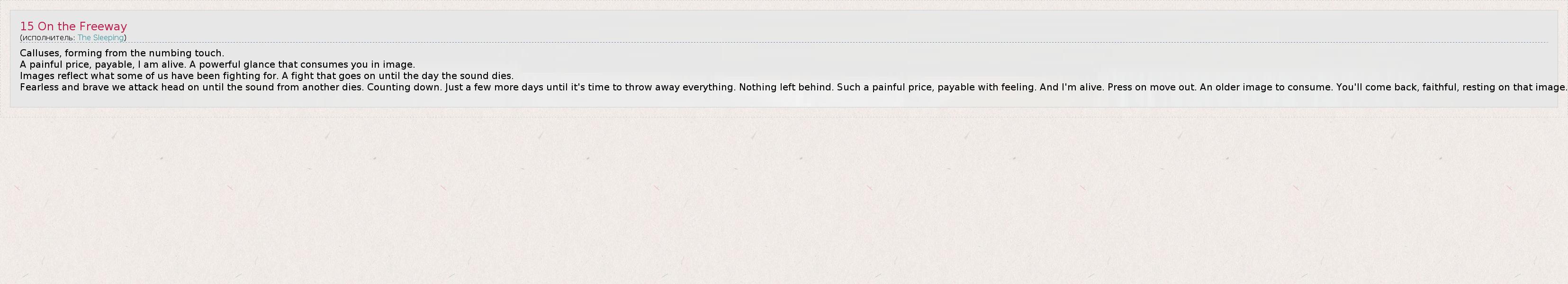 А как ты думаешь, о чем песня "15 On the Freeway" ?