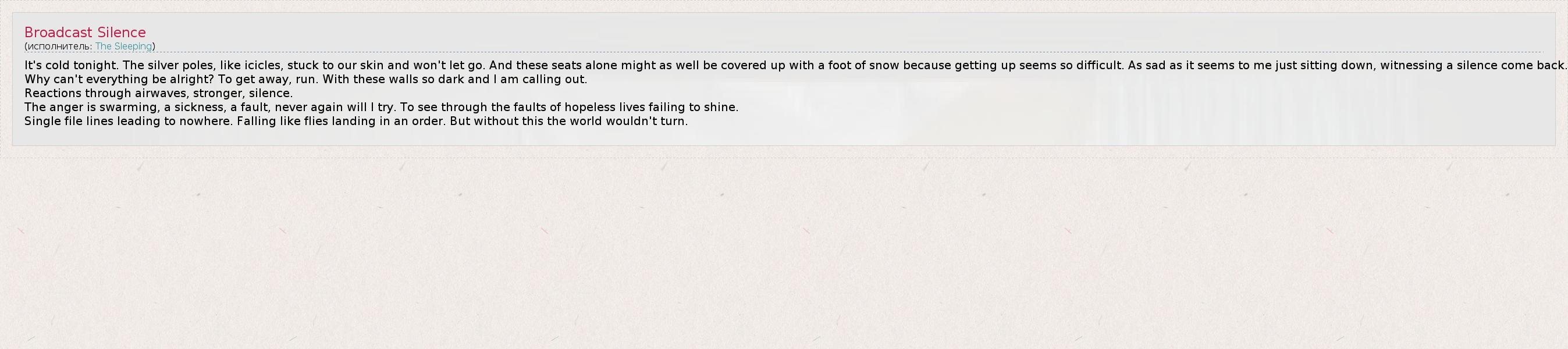 А как ты думаешь, о чем песня "Broadcast Silence" ?