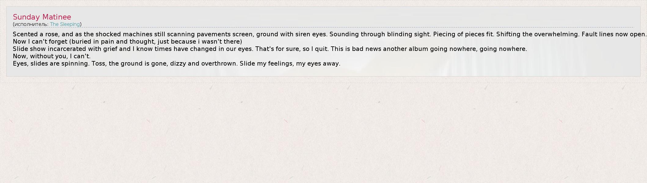 А как ты думаешь, о чем песня "Sunday Matinee" ?