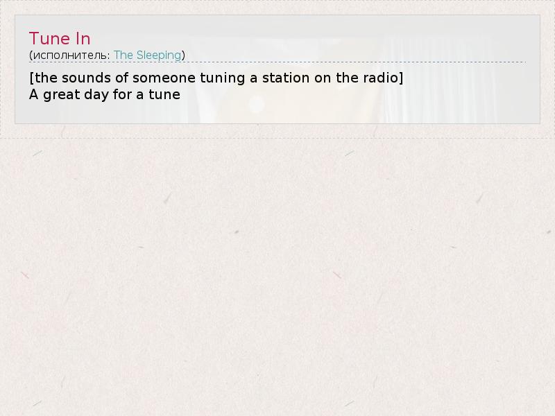 А как ты думаешь, о чем песня "Tune In" ?