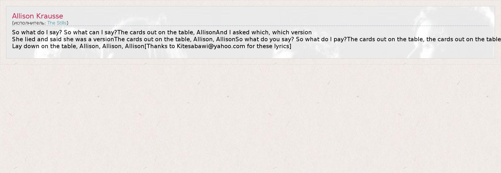 А как ты думаешь, о чем песня "Allison Krausse" ?