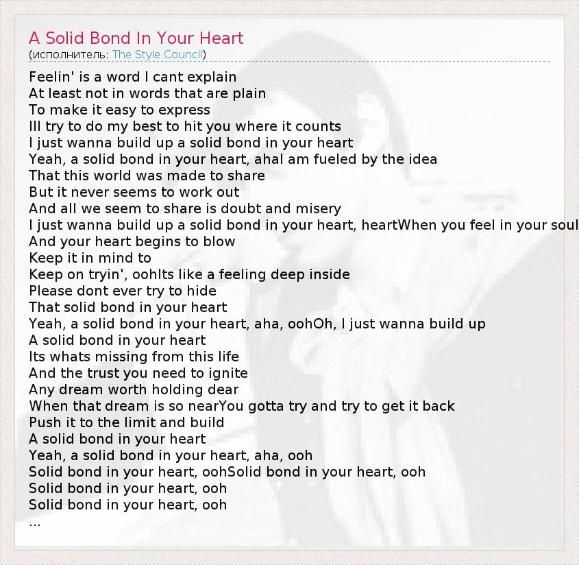 Solid bond in your heart, oohSolid bond in your heart, ooh