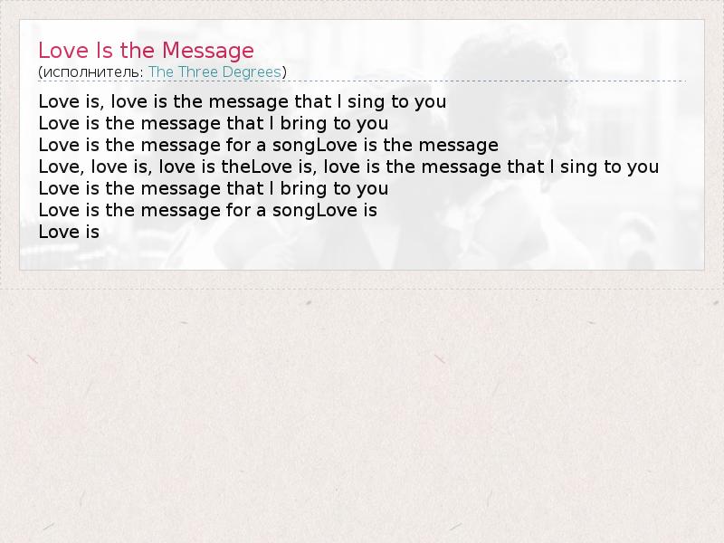А как ты думаешь, о чем песня "Love Is the Message" ?