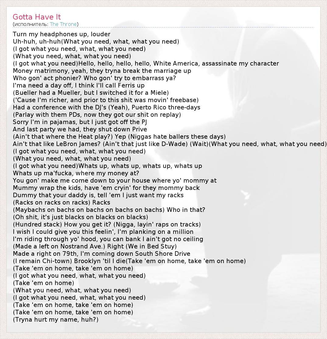 А как ты думаешь, о чем песня "Gotta Have It" ?